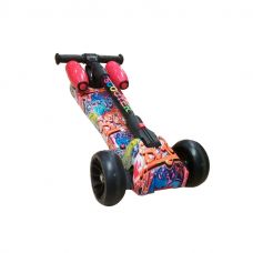 Детский самокат Gnom - трехколесная модель со светящимися колесами для детей от 3 до 8 лет. Gnom очень устойчив, спаренная пара передних колес позволяет быстро научиться кататься. Телескопическая рукоятка позволяет настраивать высоту руля. Две турбины создают невероятный эффект вырывающегося пламени и дыма (подсвеченный пар). Для эффекта пара необходимо залить воду в отсеки (турбины). Самокат имеет уникальную систему управления, поворот происходит не за счет поворота руля, а при наклоне.